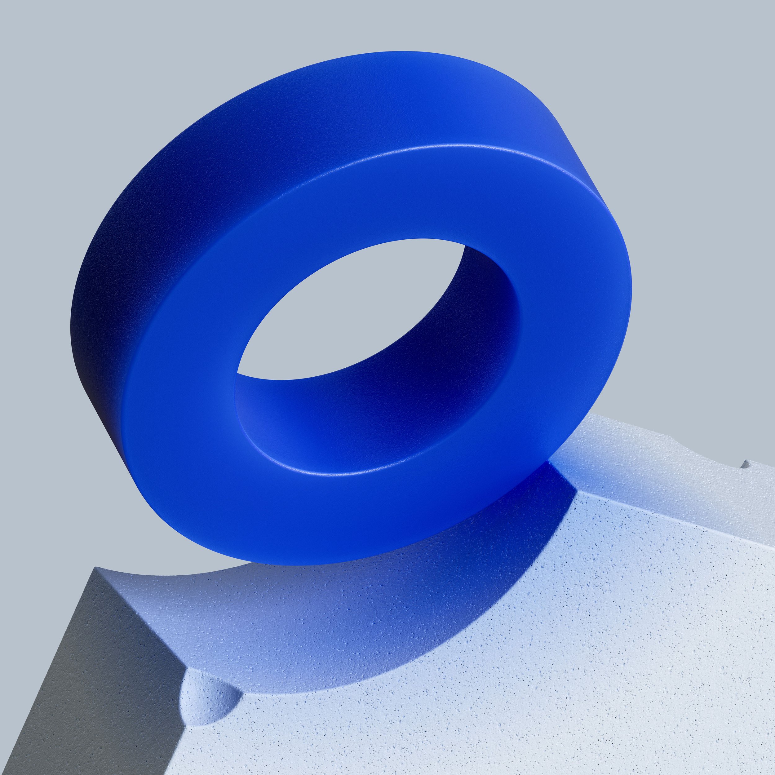 Simplified pristine solid objects represent the various different Machine Learning models that we have access to today. These shapes are either held in place by the larger hero shape or are floating in space offering the opportunity to put them to use. Similar to the Machine Learning models, these objects are resolute in their purpose and appearance, while offering an open expanse for utilization.